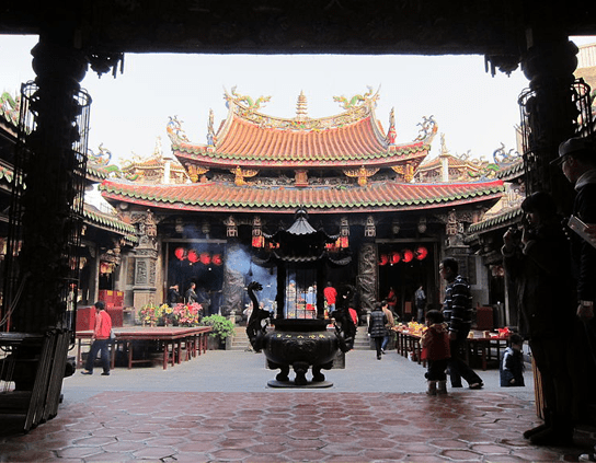 萬華區的艋舺龍山寺是國家二級古蹟,香火鼎盛也是地方信仰中心,廟內大殿主祀 觀世音菩薩,每年的點燈活動都吸引上千信眾徹夜排隊。